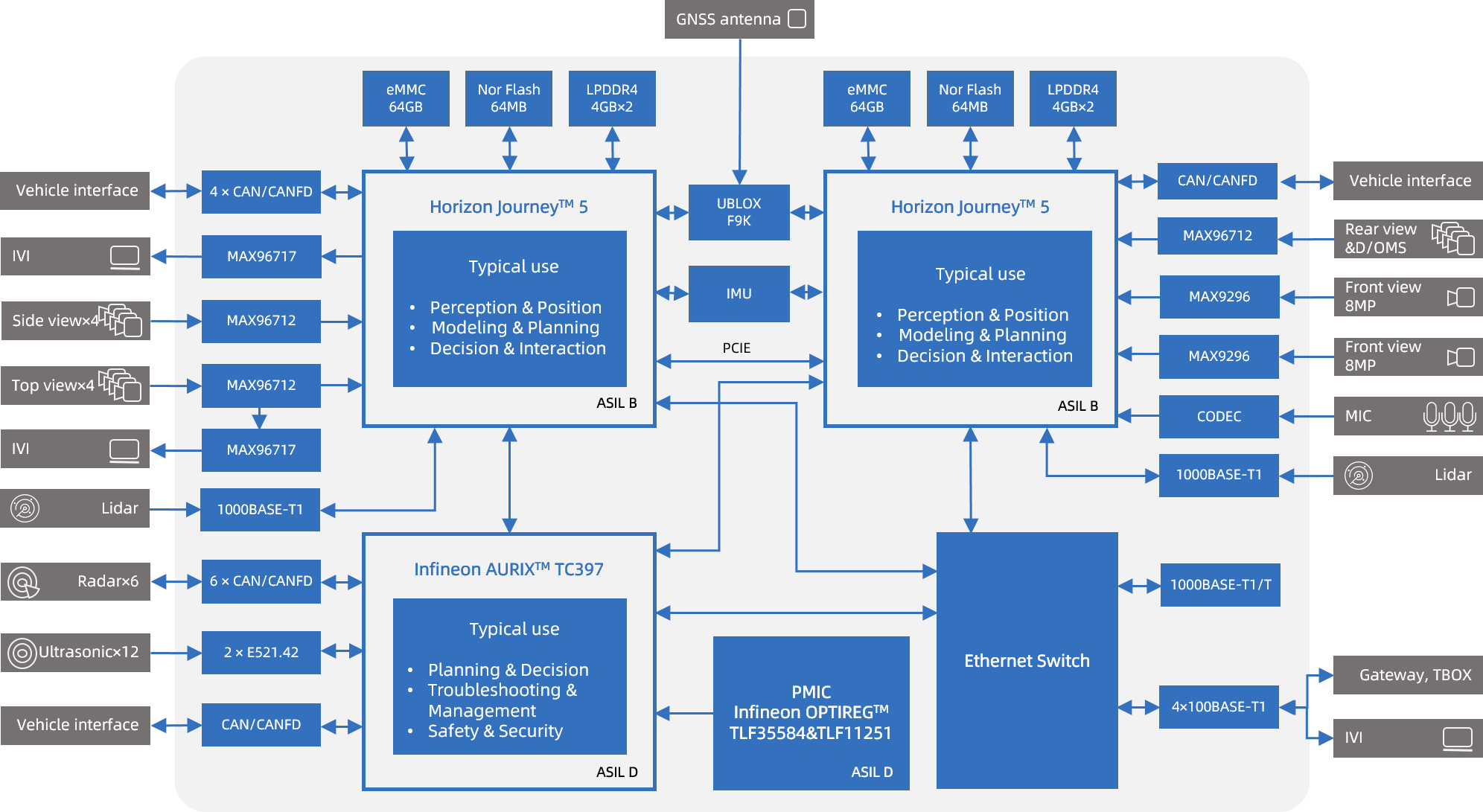 2 × Horizon Robotics Journey™ 5, each SoC: